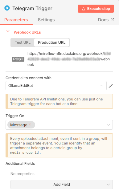 A grandes rasgos, existe una diferencia entre crear un bot directamente con el nodo trigger de telegram (porque usa polling siempre) vs. crearlo en modo webhook.